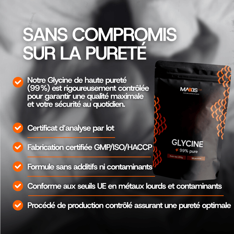 La Glycine MAXIS est produite par synthèse contrôlée, garantissant une pureté de 99%.